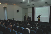 11月16日,“2008大中华区VR盟主选拔赛”赛前说明会来到了繁华的大都市上海,在同济大学举办了巡讲会活动。活动当天虽然细雨蒙蒙,但依然不能阻挡预备参赛师生们的参与积极性,活动还没有开始,相当多的企业和商业Virtools用户已经来到巡讲会现场积极参与技术讨论,一时间,展示场地就聚集了很多热情的观众。